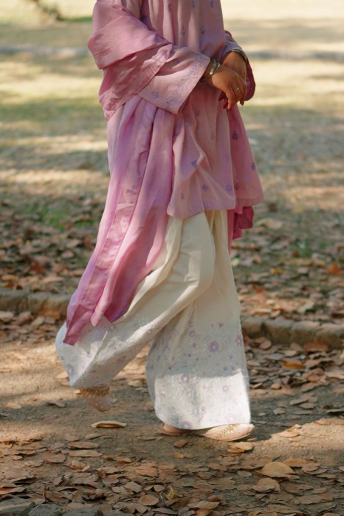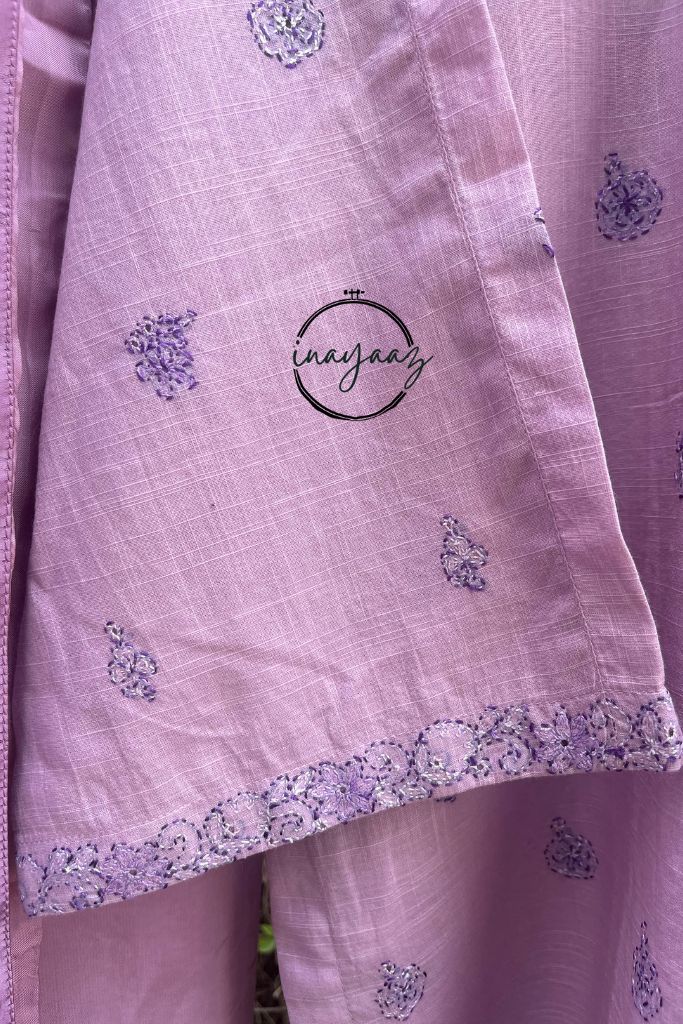 Premium 3 Piece Lilac Hand Embroidered Chikankari and Kashmiri Tanka- Freedom to Buy