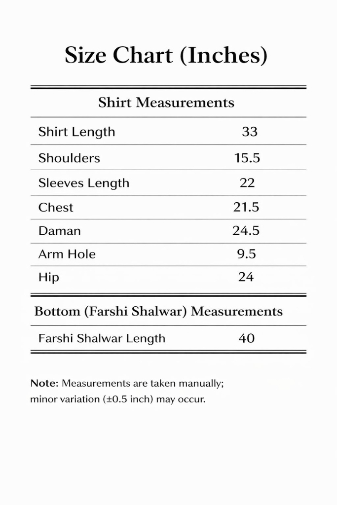 We believe in celebrating individuality! You can style your look as you wish by choosing either the shirt, dupatta, or farshi shalwarāeach a statement piece on its own, or combine them for the complete royal look.