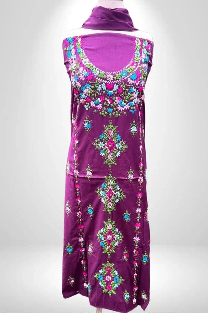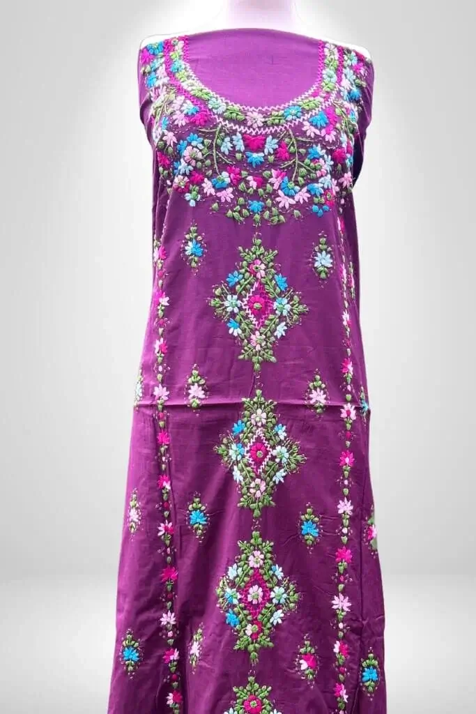 Premium 3 Piece Lilac Hand Embroidered Chikankari and Kashmiri Tanka- Freedom to Buy