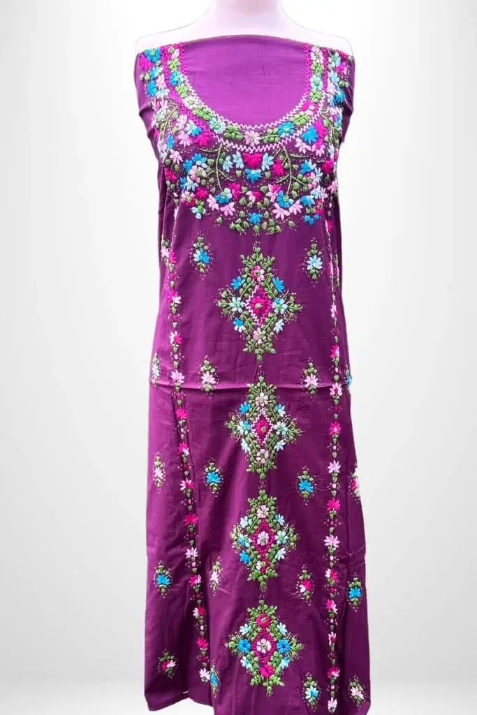 Care: Hand wash gently or opt for dry cleaning to preserve the embroidery and fabric.