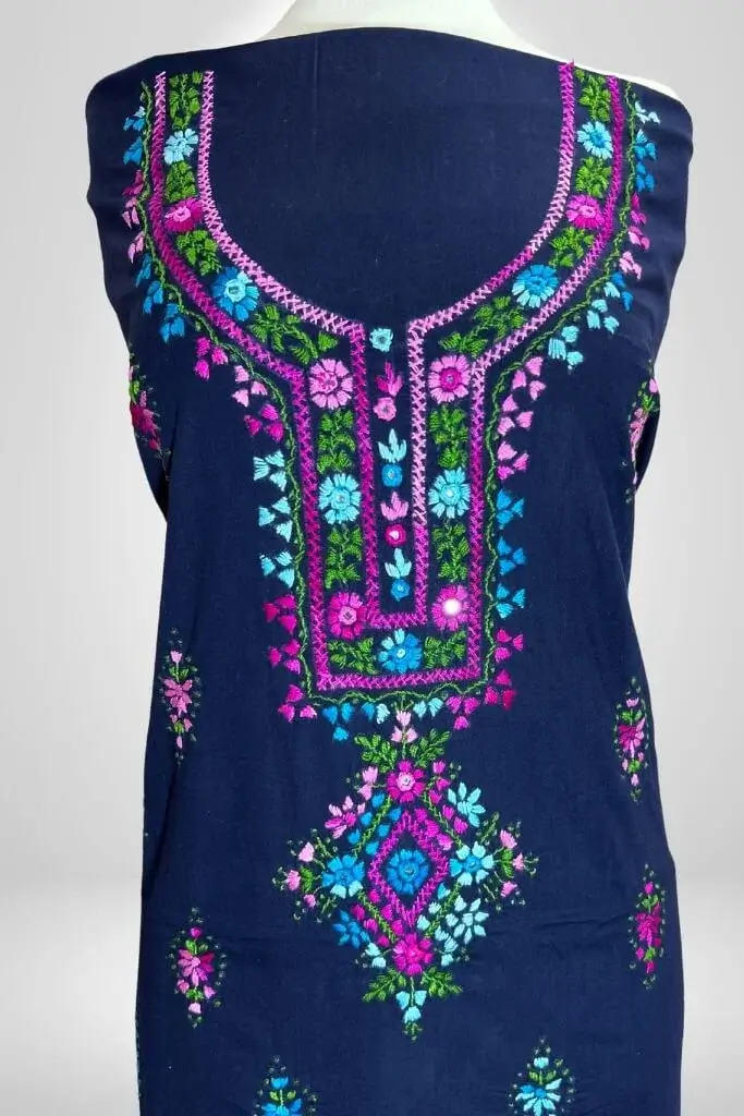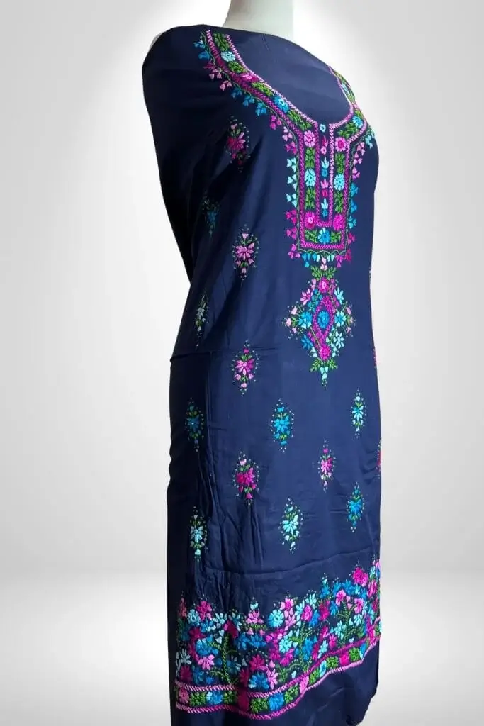 Care: Hand wash gently or opt for dry cleaning to preserve the embroidery and fabric.