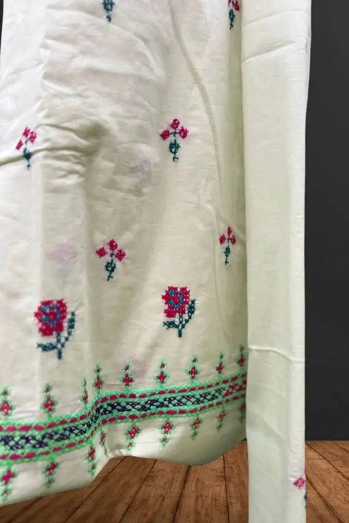 Care: Hand wash gently or opt for dry cleaning to preserve the embroidery and fabric.
