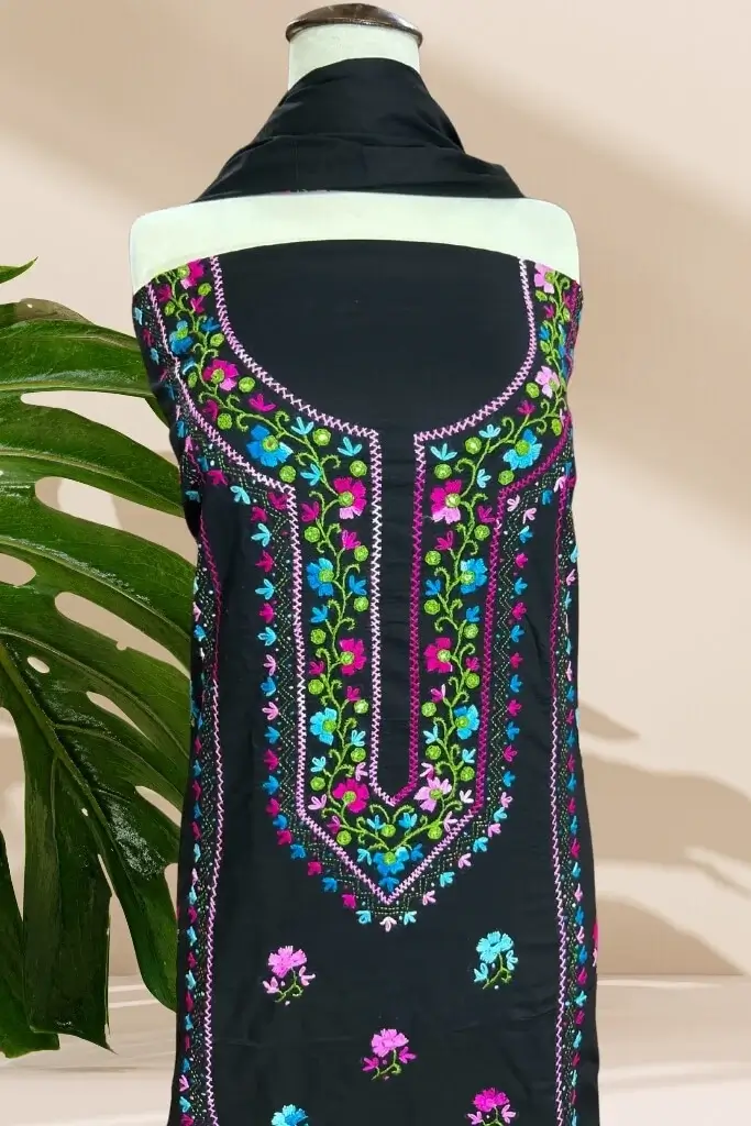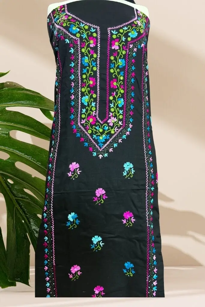 Care: Hand wash gently or opt for dry cleaning to preserve the embroidery and fabric.