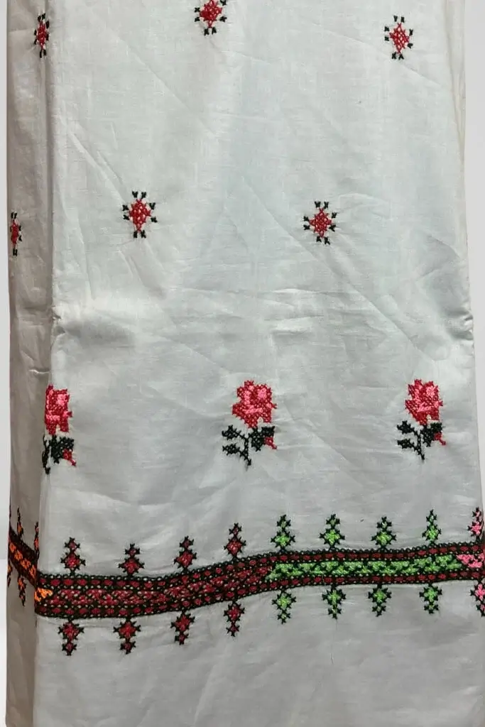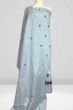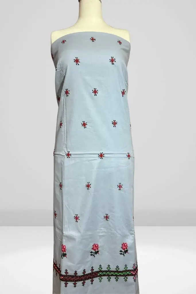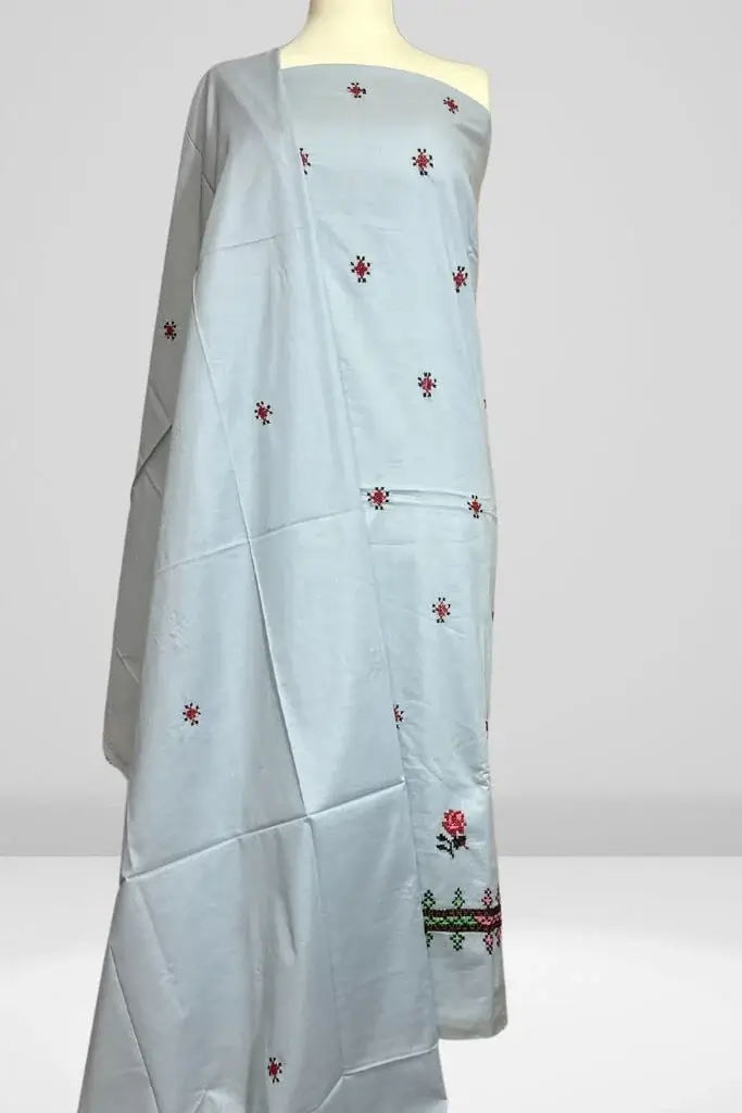 A fresh take on everyday elegance, this light gray lawn suit is adorned with intricate cross-stitch embroidery, blending comfort and style with effortless grace.