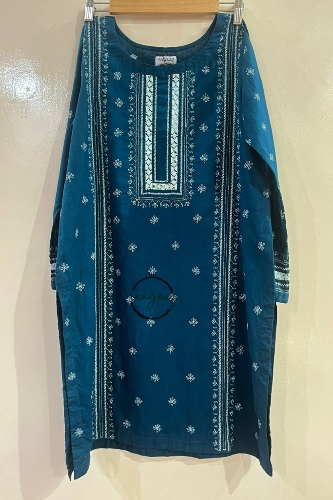 3 Piece lawn- Teal Blue Hand Embroidered Dress- Chikankari
